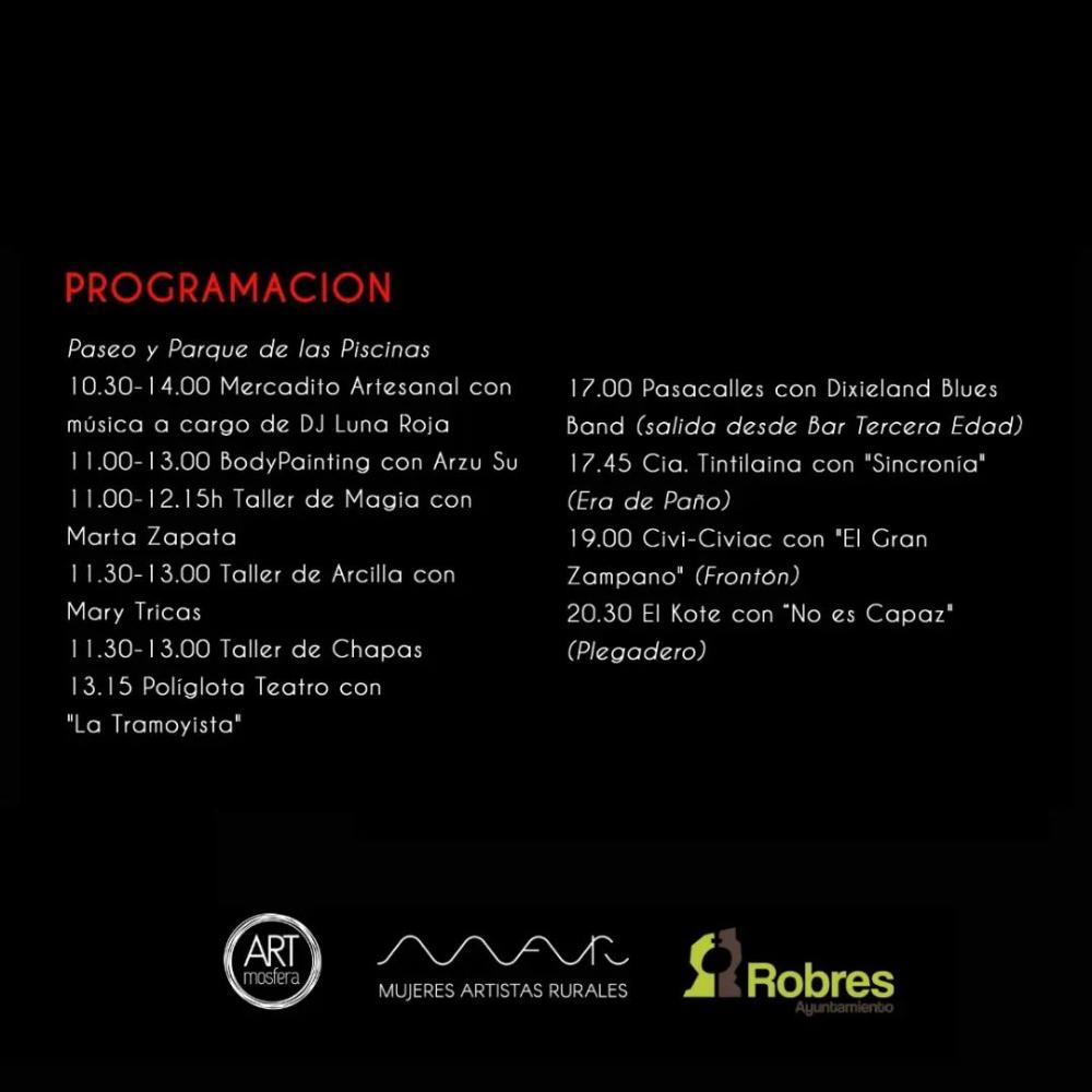 La jornada se abrirá con el mercado artesanal, que contará con la participación de casi una veintena de integrantes del proyecto MAR (Mujeres Artistas Rurales). Tendrá lugar en el paseo de las piscinas. A su lado, en una zona de parque, se desarrollarán talleres gratuitos de magia, arcilla y fabricación de chapas. También habrá una exhibición de bodypainting. La actividad se prolongará durante toda la mañana, de 10.30 a 14.00, y estará amenizada por DJ Luna Roja, con música infantil y familiar.